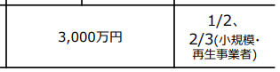 補助上限は3,000万円、補助率は2分の1、小規模、再生事業者の場合は3分の2です。